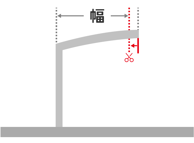 設置場所の間口寸法より製品の規格寸法が大きい場合や、土地の幅に合わせて製品をカスタマイズするために切り詰め加工を行います。設置場所にぴったりと合ったサイズでの施工が可能です。